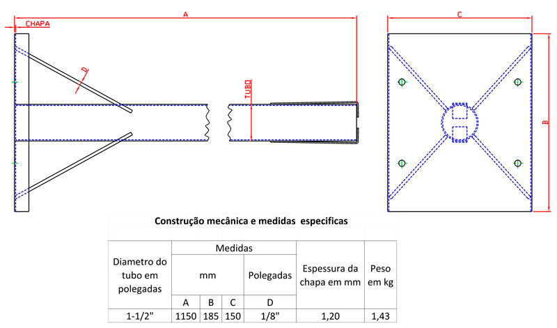 | Item Nº1- Acompanha 1 Unidade de Pedestal para Lixeira de 1,15 metros. | ||